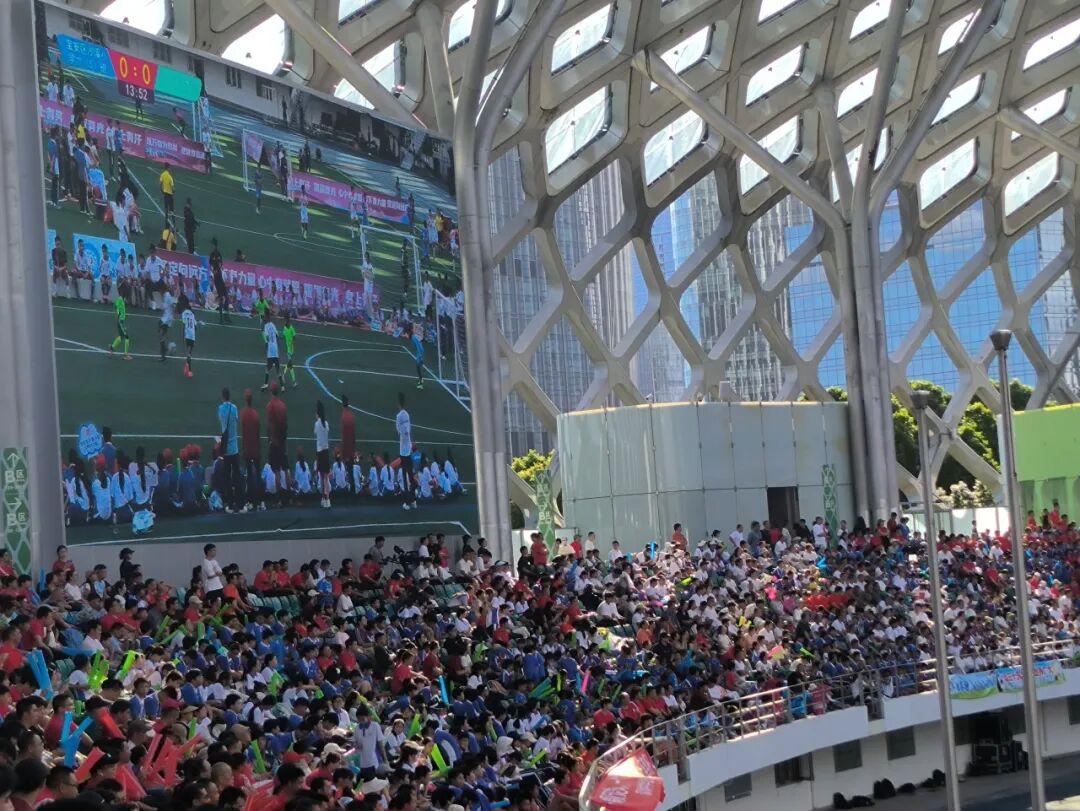 如果说观众席上是热情似火,那么绿茵场上则是激情澎湃。球员们尽管都是来自中小学的青少年,但足球功夫却都颇显老辣。从短传、长传、直塞等传球功夫,到远射、头球、挑射等射门动作,到拦截、解围、铲球等防御动作,孩子们场上的激情比拼牵引人心,精彩程度可谓不逊色于专业比赛。解说员在兴奋高亢地解说之余,不时连声感慨:“小家伙真不赖!我要是俱乐部老板,这就得签了他!”